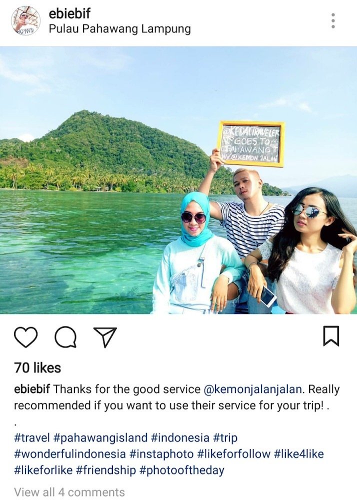 Liburan Anda akan semakin berkesan bersama kami. Ribuan pelanggan telah menjelajahi keindahan Indonesia. Mulai dari pesona Bali, ketenangan Yogyakarta, keelokan Labuan Bajo, hingga alam magis Raja Ampat. KEMON JALAN JALAN berkomitmen menghadirkan pengalaman liburan yang bukan hanya menyenangkan, tetapi juga meninggalkan cerita yang akan Anda kenang selamanya.
